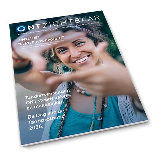 Wilt u uw patiënten informeren over tandprothetische zorg? Schrijf uw praktijk voor in voor ONTzichtbaar, het gratis magazine van de ONT voor wachtkamers van huisartsen, tandartsen en andere zorgprofessionals.